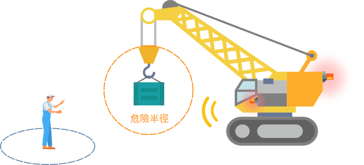 保護現場人員免受起重危險區的傷害,警告吊車操作員和人員在進入裝載區時危險區半徑,自動發送警告信息。